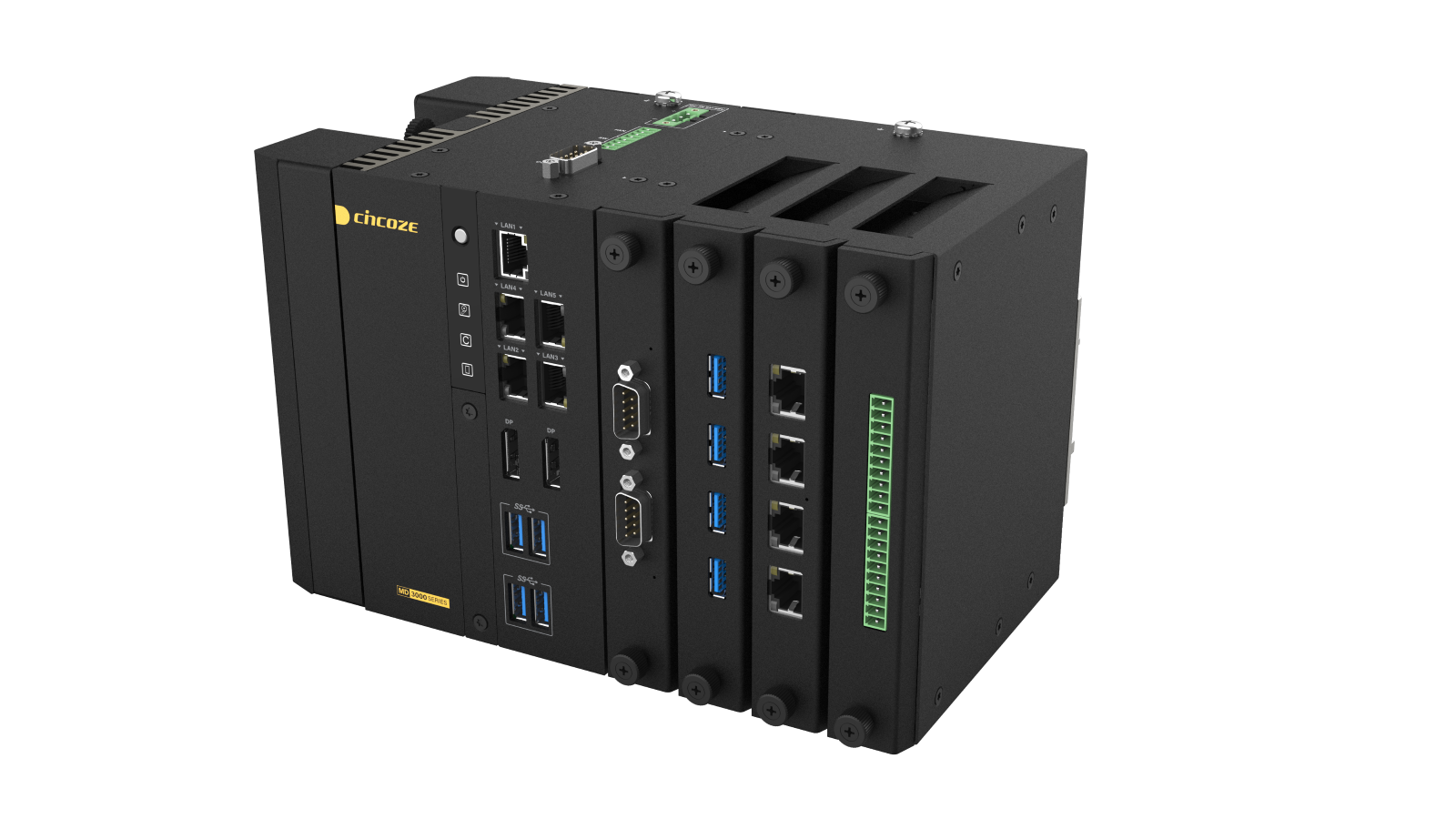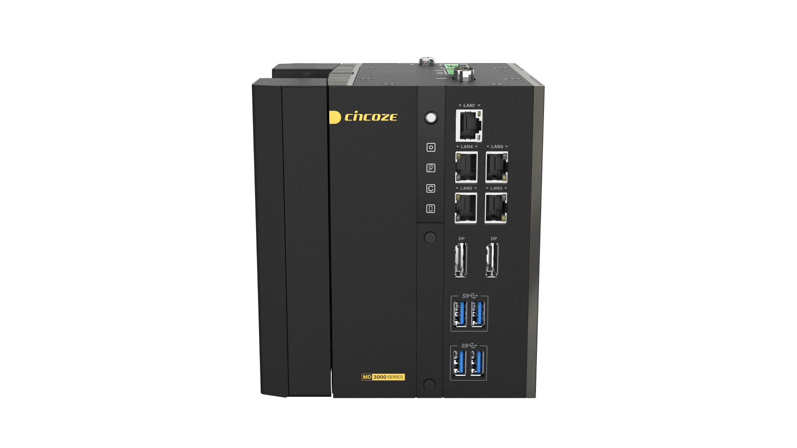 『MD-3000』は高さわずか150mmというコンパクトな筐体ながら、Intel® Core™ デスクトップグレードCPU に対応し、最大6スロットの SED(Scalable Expansion Deck) を備えています。さらに10種類以上の SEM(Scalable Expansion Module) と柔軟に組み合わせが可能で、用途に応じて自在に拡張できます。 優れたコンピューティングパフォーマンス —— 第14/13/12世代Intel® Core™ CPU(35~65W)、最大96GBの5600MHz DDR5メモリ、最大2基のNVMe SSDをサポートします。視覚誘導ロボット、検査、測定、可視化といったマシンビジョンタスクに必要なパフォーマンスを提供します。 2つの特許取得済み熱設計技術を採用 —— マシンビジョンに求められる高速画像処理やAI推論を実現するには、高い演算性能が欠かせません。 MD-3000は、第14/13/12世代 Intel® Core™ プロセッサ(35~65W) に対応し、 最大 96GB DDR5メモリ と デュアルNVMe SSD を搭載可能。 AI推論やビジョン処理など、負荷の大きいワークロードにも十分対応できます。 これほど高性能でありながら、わずか150mmの筐体内で安定動作を実現するため、Cincozeは2つの特許技術を採用しています。 ・Dynamic Thermal Mechanism(動的熱機構) CPUヒートシンクとトップカバーの密着度を最適化し、わずかな機械的誤差も排除。 効率的に熱をアルミフィンへ伝え、外部ファンによって粉塵を吸い込むことなく素早く放熱します。 ・Smart OTP(過熱防止保護機構) ファンの状態を自動で監視し、温度に応じて動作を最適化。 長期的なCPU性能の安定を維持します。 (特許番号:I893729、I870277) 柔軟な拡張性 —— MD-3000はCincoze独自のモジュラー構造を採用しており、 本体(コンピュータ部)、SED(拡張デッキ)、SEM(拡張モジュール) で構成されています。 ユーザーは用途に応じて 2・4・6スロット のSEDを選択し、 I/Oインタフェース、PoE、M.2拡張、2.5インチストレージ など、さまざまなSEMを自由に組み合わせ可能です。 すべてのSEMは ホットスワップ対応 で、ガイドレール設計 により取り付けや交換も容易。 設置効率とメンテナンス性を大幅に向上させています。 取り付けも拡張も簡単、プラグアンドプレイ —— 高さ150mmのコンパクト設計に加え、DINレールへの取り付けに対応しています。 すべての操作インターフェースやメンテナンス箇所に前面からアクセスできるため、 制御盤やエンクロージャへの設置に最適です。 CincozeのSEMモジュールは柔軟性が高く、ホットスワップ可能です。ガイドレールアライメント設計により、設置がより簡単かつ迅速になります。 堅牢で信頼性の高い設計 —— 制御盤や筐体内の限られたスペースでも設置できるよう、MD-3000は高さ150mmの省スペース設計を採用。 DINレール取付に対応し、すべての操作部およびI/Oポートを前面に配置しています。 これにより、設置やメンテナンスが非常に簡単です。 また、Cincozeの堅牢設計を継承し、 広温度範囲(-40°C~65°C) 広電圧範囲(9~48VDC) 耐衝撃・耐振動性 産業用EMC規格(EN 61000-6-2 / 6-4)準拠 といった高い信頼性を確保。